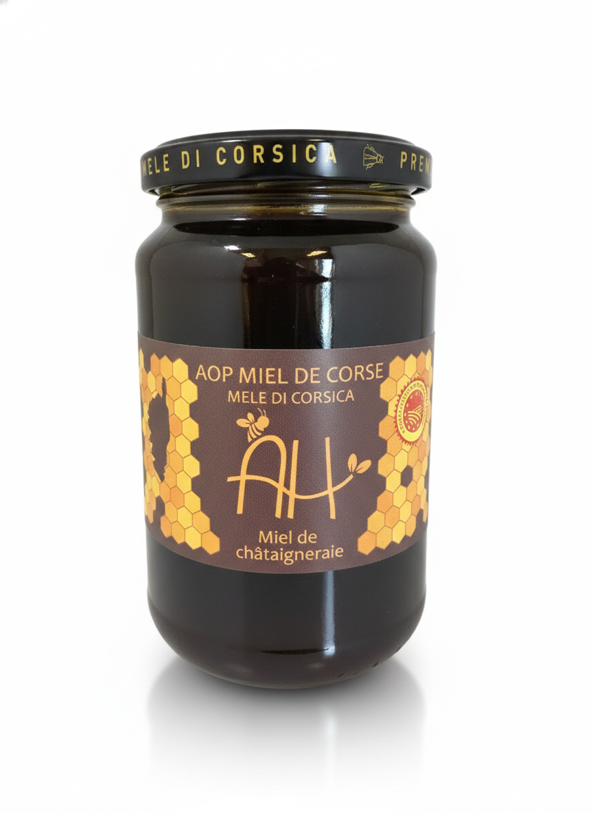 Sa couleur ambre sombre son odeur forte et suave, des saveurs boisés et une certaine amertume caractérisent ce miel corsé. Il a une réputation bénéfique pour la circulation sanguine et des qualités cicatrisantes. Il est riche en oligoéléments: Potassium, Magnésium, Manganèse et Baryum.