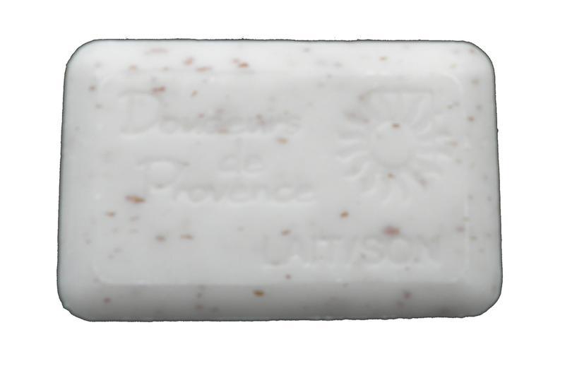 Savon végétal exfoliant (gommage) 200g forme rectangulaire très fin et très doux, fabriqué dans notre bassin provençal. Une odeur assez execptionnelle pour cette gamme.