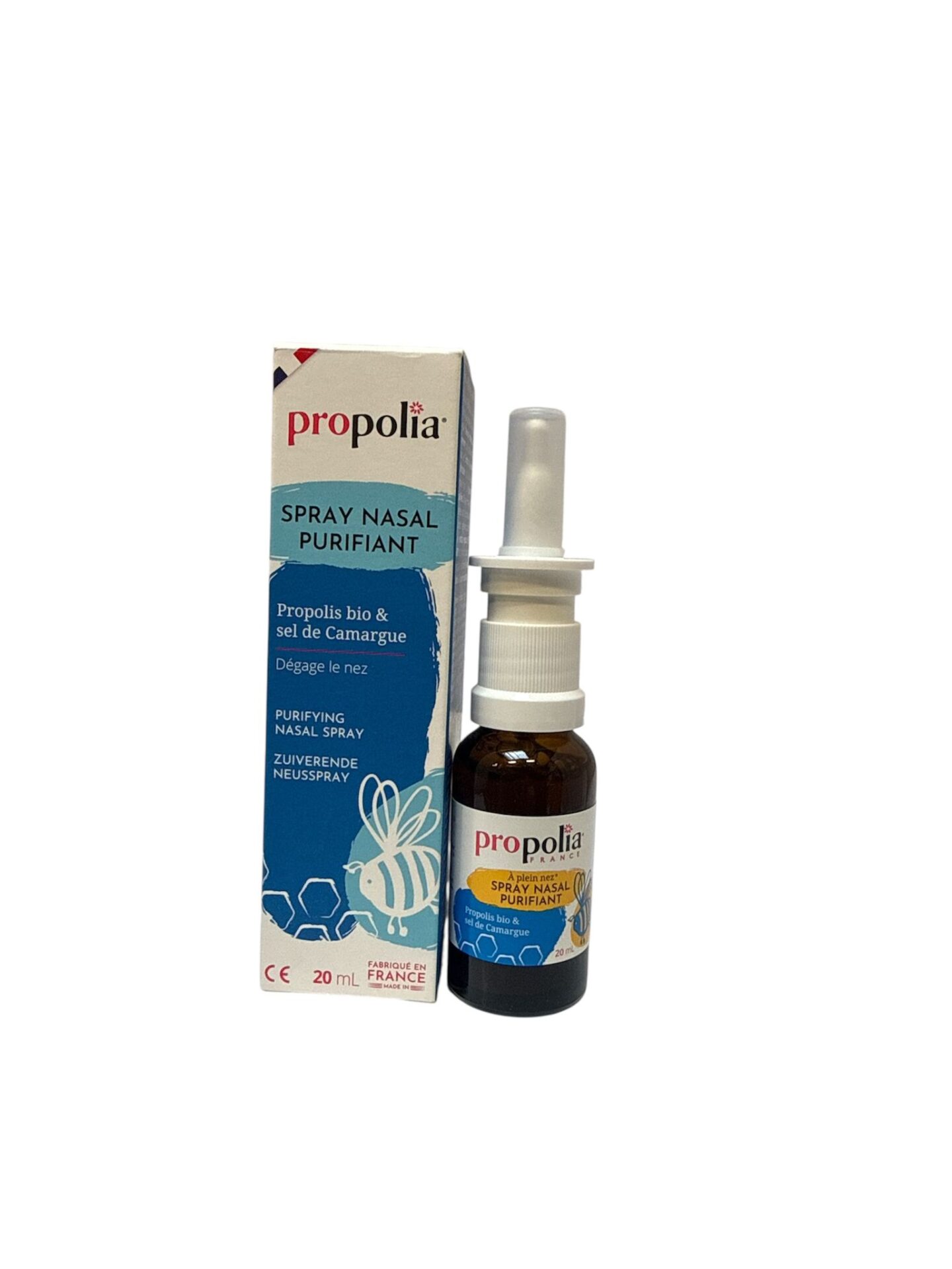 Précautions d’emploi : à partir de 3 ans. Ne pas utiliser chez les personnes allergiques aux produits de la ruche ou à une des autres substances. Contient des traces d’allergènes (en particulier d’Eucalyptol), peut entrainer des réactions d’allergie de contact chez des sujets déjà présensibilisés. Tenir hors de portée des jeunes enfants. Ne pas insérer l’embout totalement dans la narine. Éviter le contact avec les yeux.